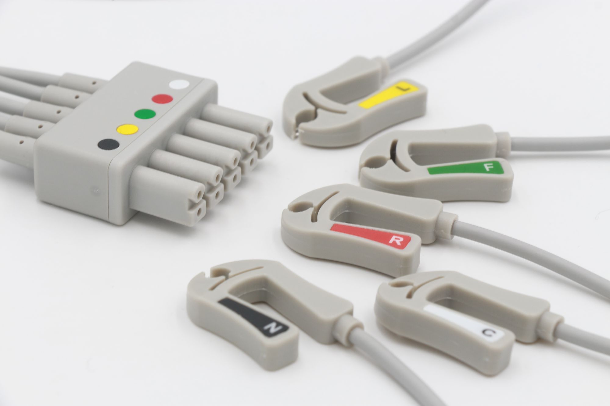 • One-Piece ECG Cable with 5-Lead Wire/6Pin